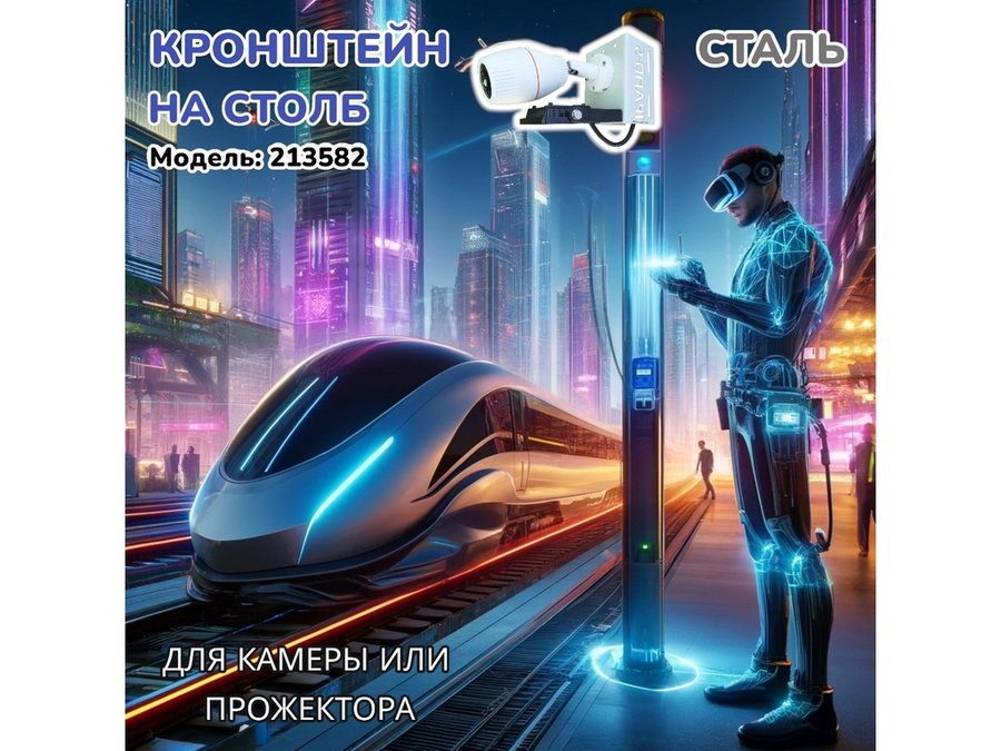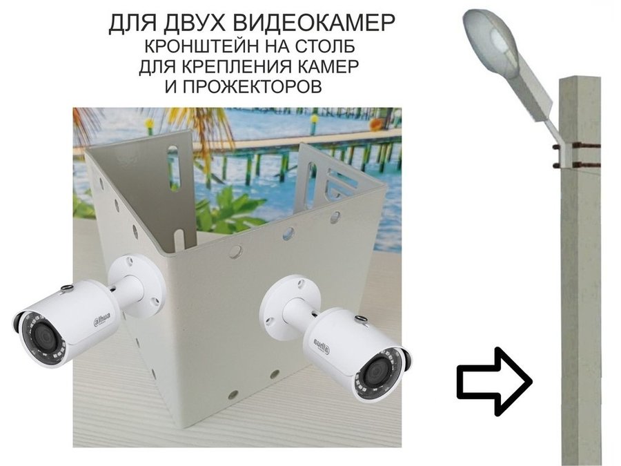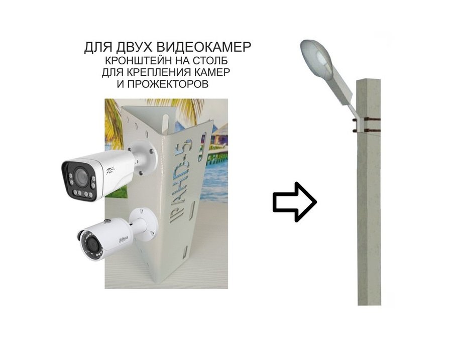 В корзину Купить в 1 клик Кронштейн на столб для крепления гермобокса с видеокамерой,вылет 100 см "HIWOLL-217396" серый, сталь