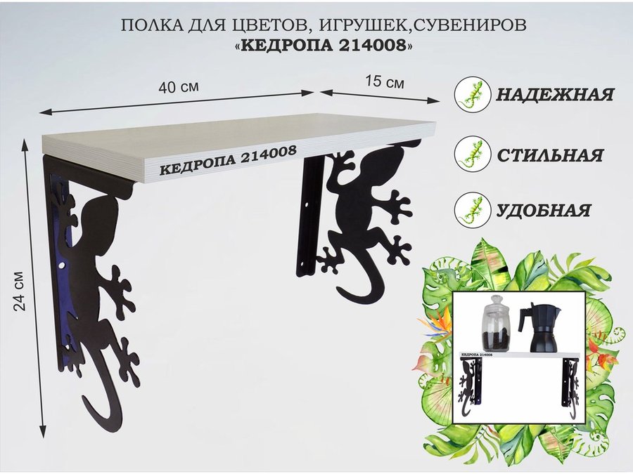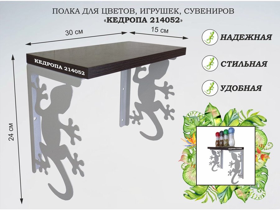 В корзину Купить в 1 клик Полка для цветов, игрушек,сувениров "КЕДРОПА-214005 гекон" размер 15х40х24 см, венге