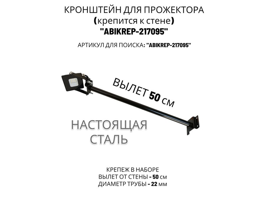 В корзину Купить в 1 клик Кронштейн для прожектора к стене, диаметр 22мм, вылет 0,5 м "ABIKREP-217095" черный, основание 9х6см