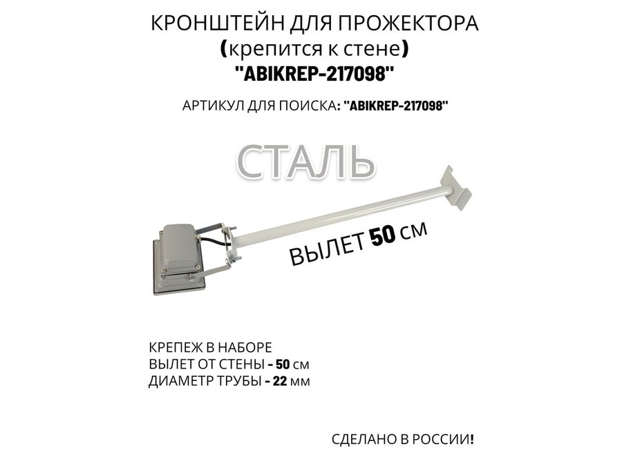 В корзину Купить в 1 клик Кронштейн для прожектора к стене, диаметр 22мм, вылет 0,5 м "ABIKREP-217098" серый, основание 9х6см