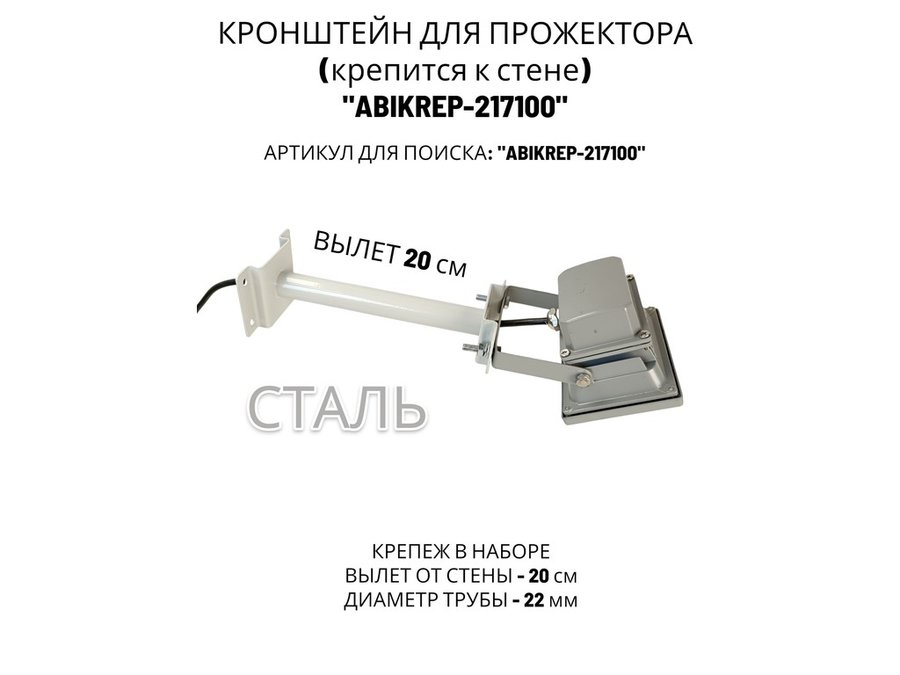 В корзину Купить в 1 клик Кронштейн для прожектора к стене, диаметр 22мм, вылет 0,2 м "ABIKREP-217100" серый, основание 9х6см