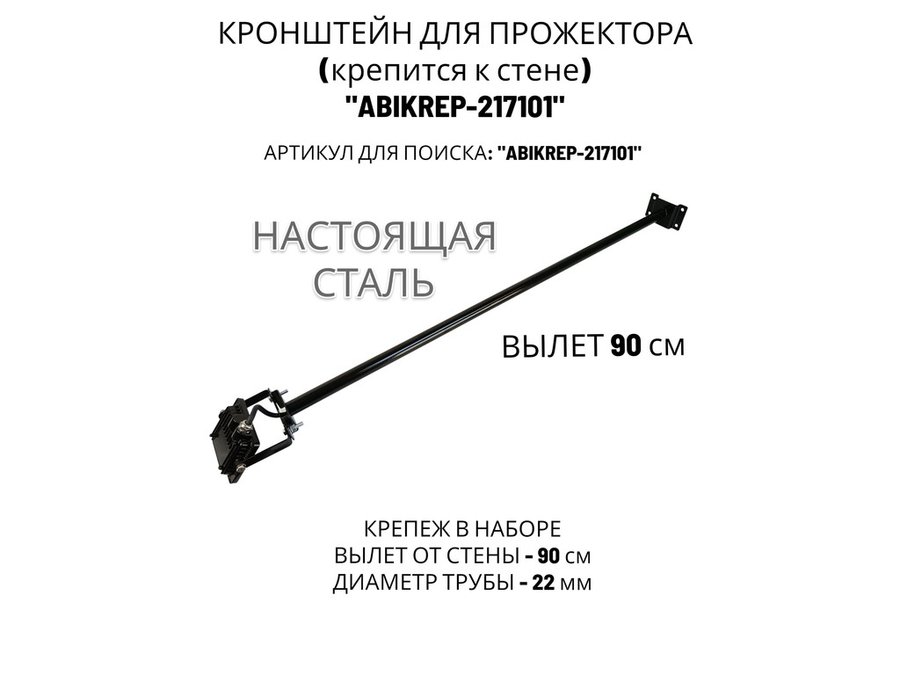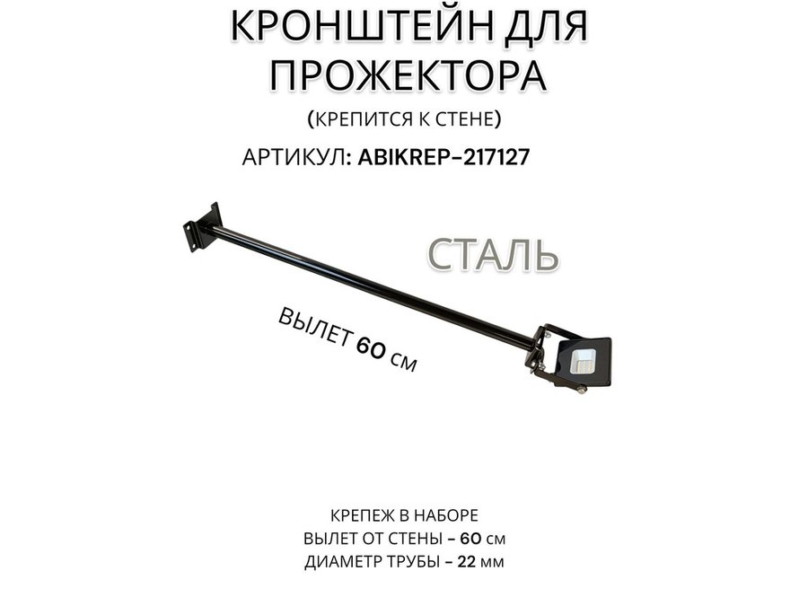 В корзину Купить в 1 клик Кронштейн для прожектора к стене, диаметр 22мм, вылет 0,9 м "ABIKREP-217101" черный, основание 9х6см