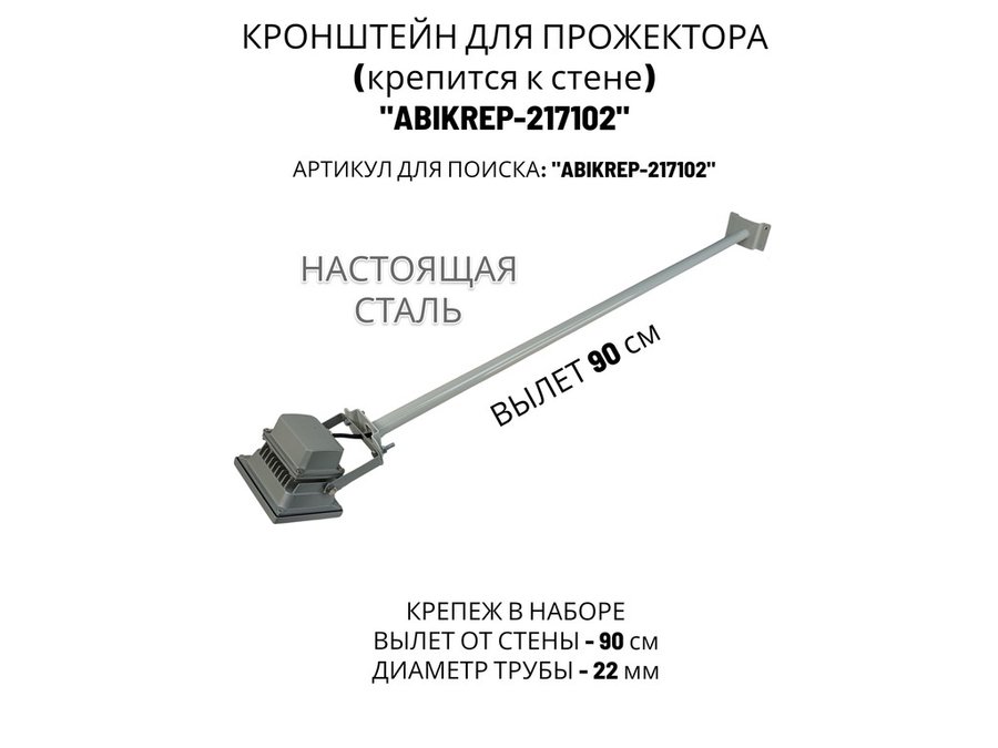 В корзину Купить в 1 клик Кронштейн для прожектора к стене, диаметр 22мм, вылет 0,9 м "ABIKREP-217102" серый, основание 9х6см