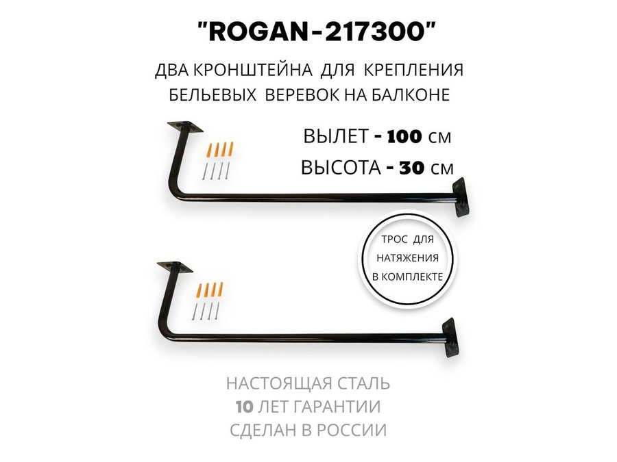 В корзину Купить в 1 клик Сушилка для белья под веревки, 2 кронштейна, длина 100см, вылет 30см "ROGAN-217300" черный, 32мм