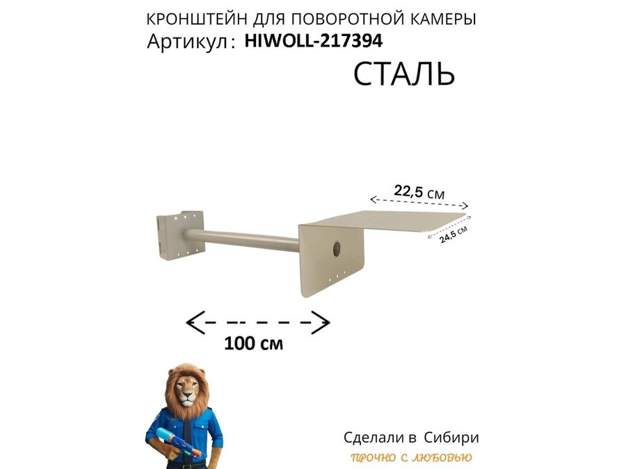 В корзину Купить в 1 клик Кронштейн "HIWOLL-217411" на столб для видеокамеры, вылет 100см, с укосиной, серый, сталь