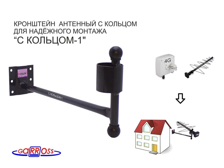В корзину Купить в 1 клик Кронштейн антенный "С КОЛЬЦОМ-1" ЧЁРНЫЙ вылет 0,38м; диаметр кольца 50мм, 6 отверстий