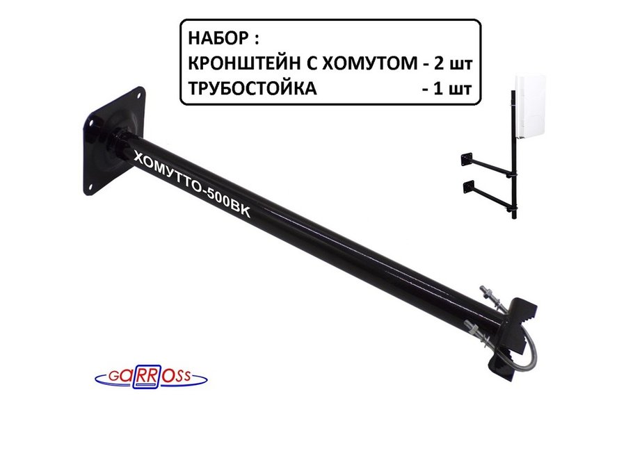 Набор. Два кронштейна вылет 0,5метра и труба 1метр обжатая сверху "Хомутто-215931" цвет черный