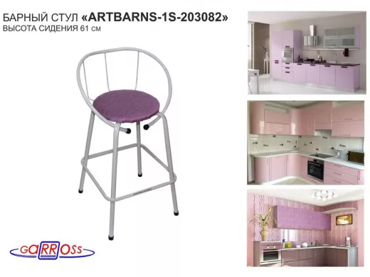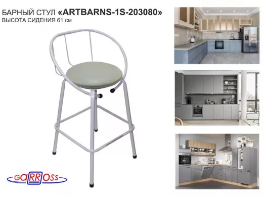 "ARTBARNS 1S-195193" cтул барный, табурет, спинка, высота 0,61метра, 22мм,серые ножки/Вольт 01 ткань
