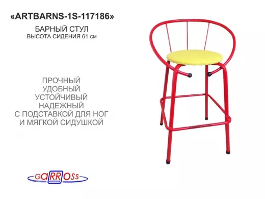 - "ARTBARNS-1S" позволит уютно расположиться, облокотиться на спинку и провести немало приятных минут за коктейлями и беседой. Сиденье удобной формы обито тканью.