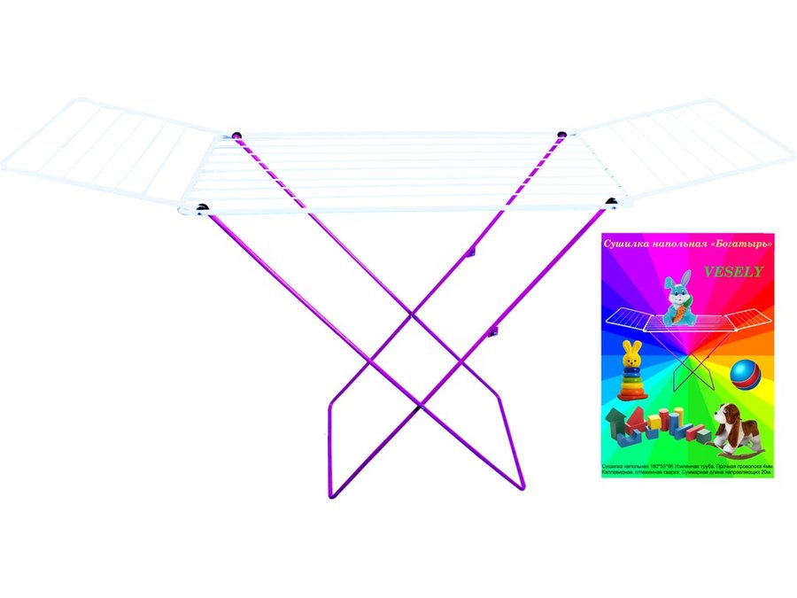 В корзину Купить в 1 клик "БОГАТЫРЬ" VESELY сушилка напольная РОЗОВО-БЕЛАЯ 20 метров, усиленная труба, прочная проволока 4мм