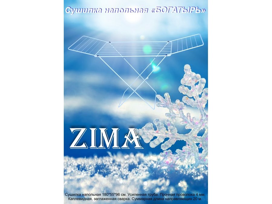 - "БОГАТЫРЬ" ZIMA сушилка напольная БЕЛАЯ 20 метров, предназначена для сушки белья
