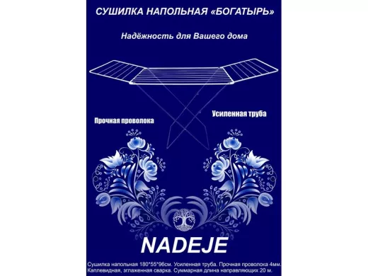 - "БОГАТЫРЬ" NADEJE сушилка напольная СИНЕ-БЕЛАЯ 20 метров, предназначена для сушки белья