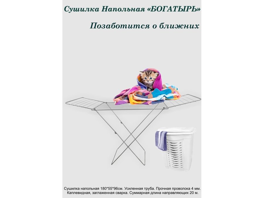 - "БОГАТЫРЬ STYLE - 5" сушилка напольная СЕРЕБРИСТАЯ 20 метров, предназначена для сушки белья