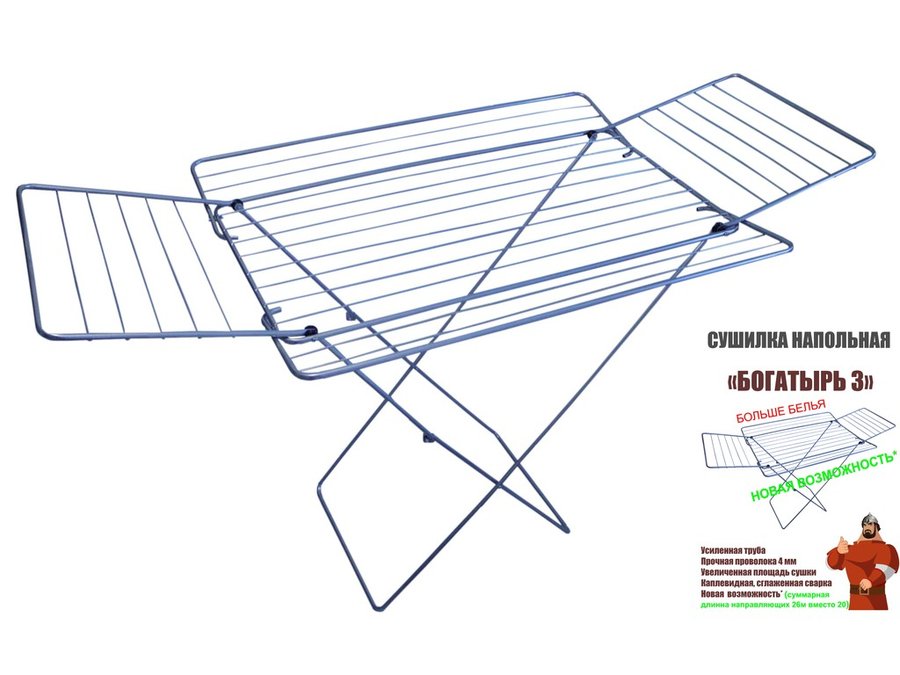 . Сушилки для белья "БОГАТЫРЬ-3" УСИЛЕННЫЕ напольные 4 крыла