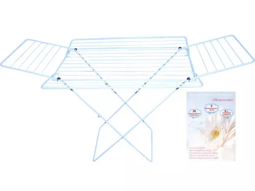 В корзину Купить в 1 клик "БОГАТЫРЬ-3" НЕЖНОСТЬ cушилка напольная, ЧЕТЫРЕ КРЫЛА, усиленная (труба и струны) БЕЛАЯ 26 метров