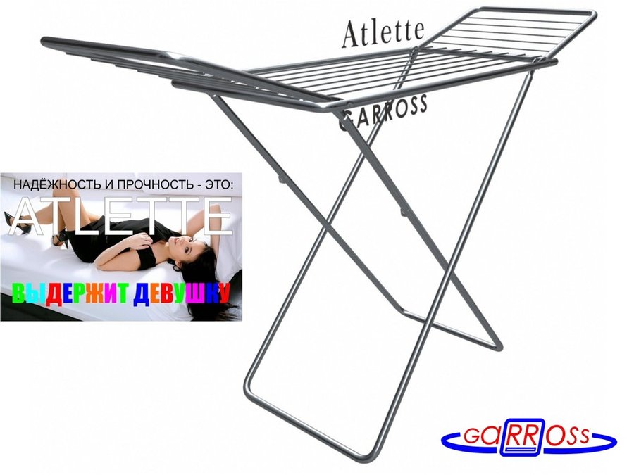 В корзину Купить в 1 клик "ATLETTE-81296" сушилка напольная белая, ВЫДЕРЖИТ ДЕВУШКУ труба 22мм, проволока 5мм, до 50кг