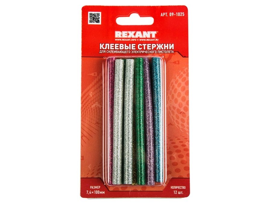 В корзину Купить в 1 клик Клеевые стержни, диаметр 7,0мм, длина 100мм, Цветной с Блестка, REXANT (12шт/уп) цена за упаковку
