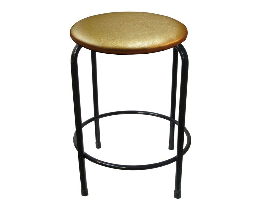 В корзину Купить в 1 клик Табурет с подставкой для ног и полкой "TABURETTO-20330" круглое сиденье, чёрные, золотис, экокожа