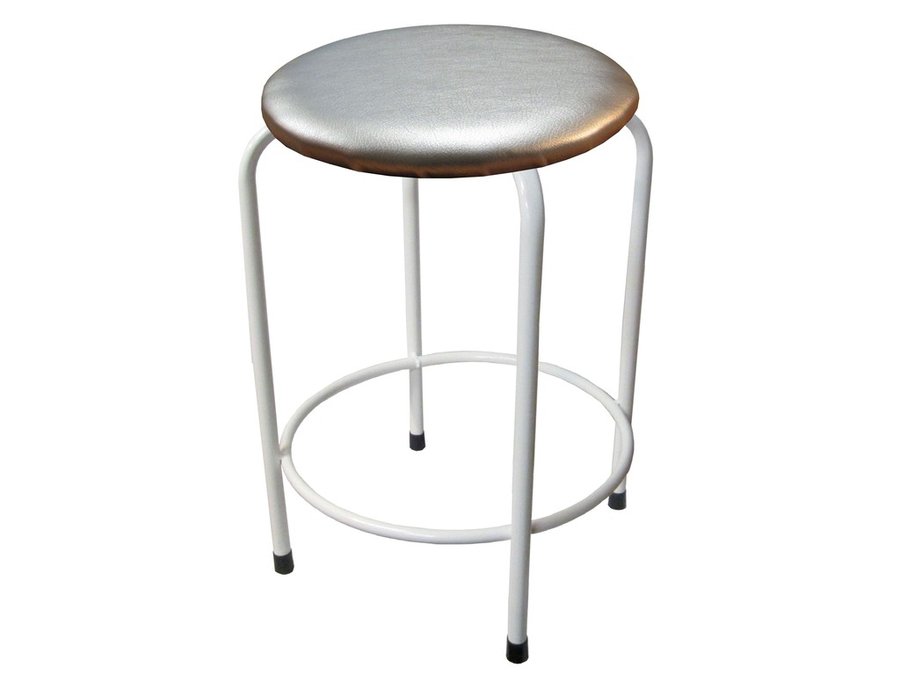В корзину Купить в 1 клик Табурет с подставкой для ног и полкой "TABURETTO-20355" круглое сиденье, белый, серебр., экокожа