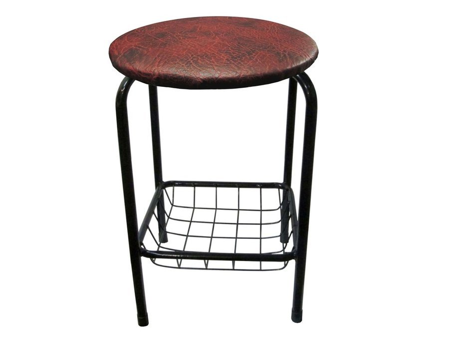 В корзину Купить в 1 клик Табурет с подставкой для ног и корзинкой для вещей "TABURETTO-20419" красные ножки, бордовы, экокожа