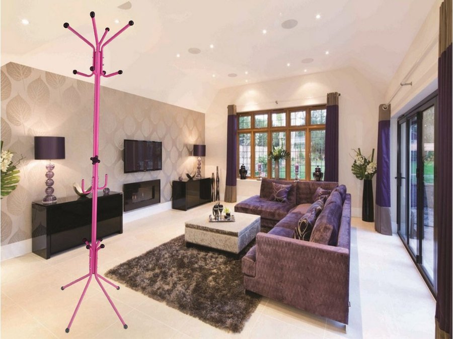 В корзину Купить в 1 клик Вешалка напольная "VENAP-3 PANTER" РОЗОВЫЙ, разборная 8 крючков сверху и 2 крючка под сумки