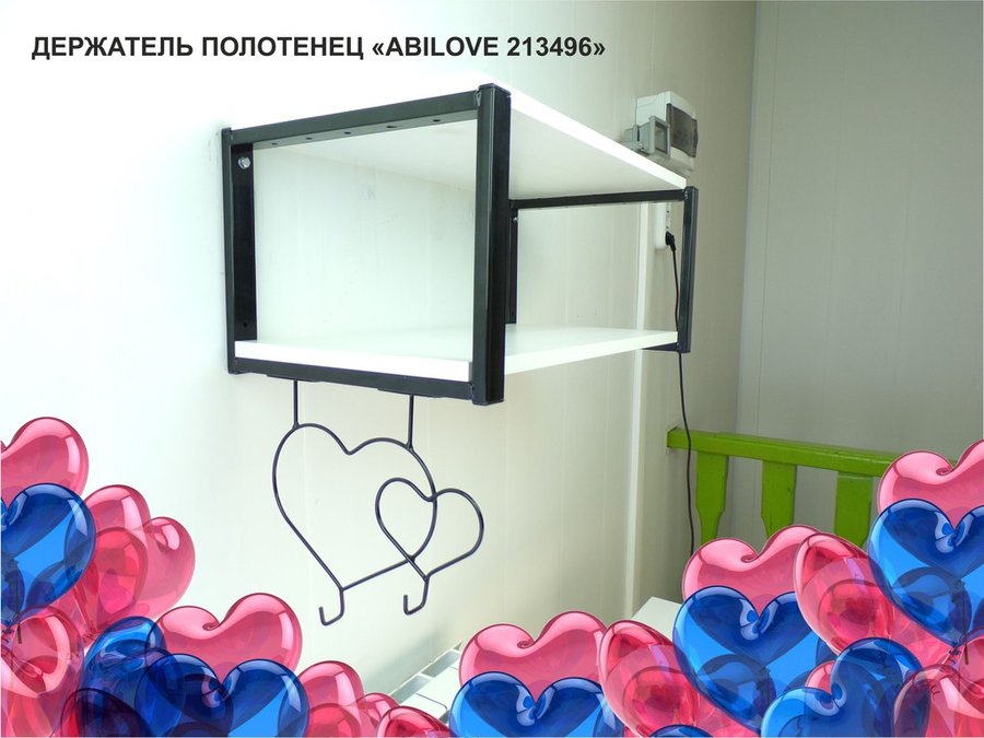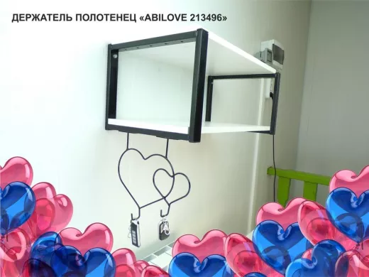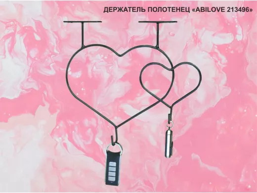 Держатель полотенец под полку, вешалка для вещей, два сердца с крючками, чёрный "ABILOVE-213496"