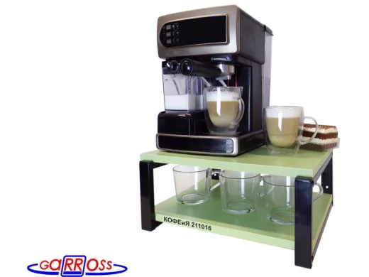 Полка под кофемашину к стене, высота 17см, черный каркас "КОФЕиЯ 211016" полки 30х40см,салатовый
