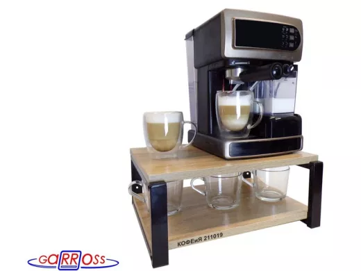 В корзину Купить в 1 клик Полка под кофемашину к стене, высота 17см, черный каркас "КОФЕиЯ 211019" полки 30х40см, дуб