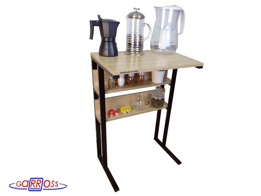 Столик для кофемашины "КОФЕиЯ 211929" высота 79 см с двумя полками для стаканов и банок ,черный, дуб