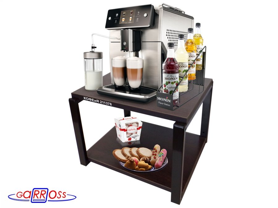 Полка под кофемашину к стене, высота 27см, черный каркас "КОФЕиЯ 211378" полки 30х40см, венге