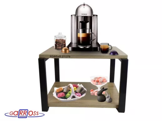 Полка под кофемашину к стене, высота 27см, черный каркас "КОФЕиЯ 211379" полки 30х40см, дуб