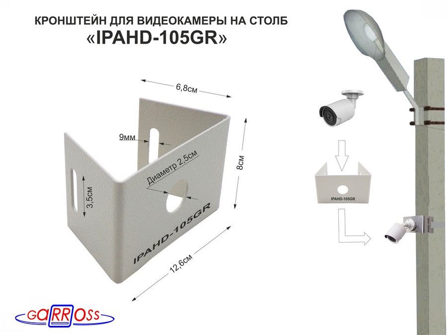 В корзину Купить в 1 клик Кронштейн мини для одной камеры на столб "IPAHD-105GR-122425" серый под СИП-ленту