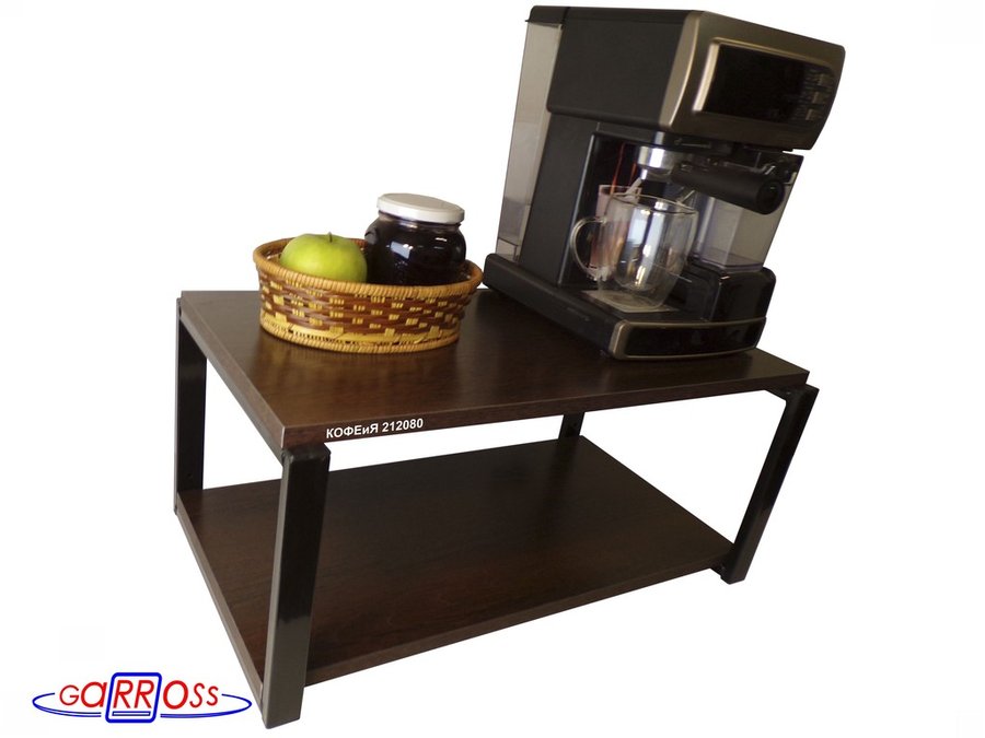 Полка под кофемашину к стене, высота 27см, черный каркас "КОФЕиЯ 212080" полки 30х60см, венге