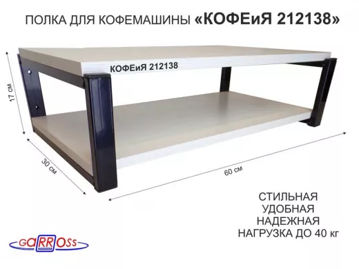 Полка для кофемашины, черная "КОФЕиЯ 212138" высота 17 см, полки 30х60 см, сосна выбеленная,2 ур