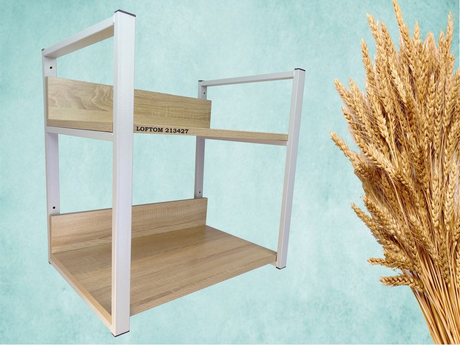 Полка под принтер и подставка для МФУ, высота 54см серый "LOFTOM 213427" 2 уровня, 35х54см, дуб