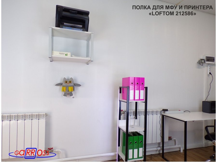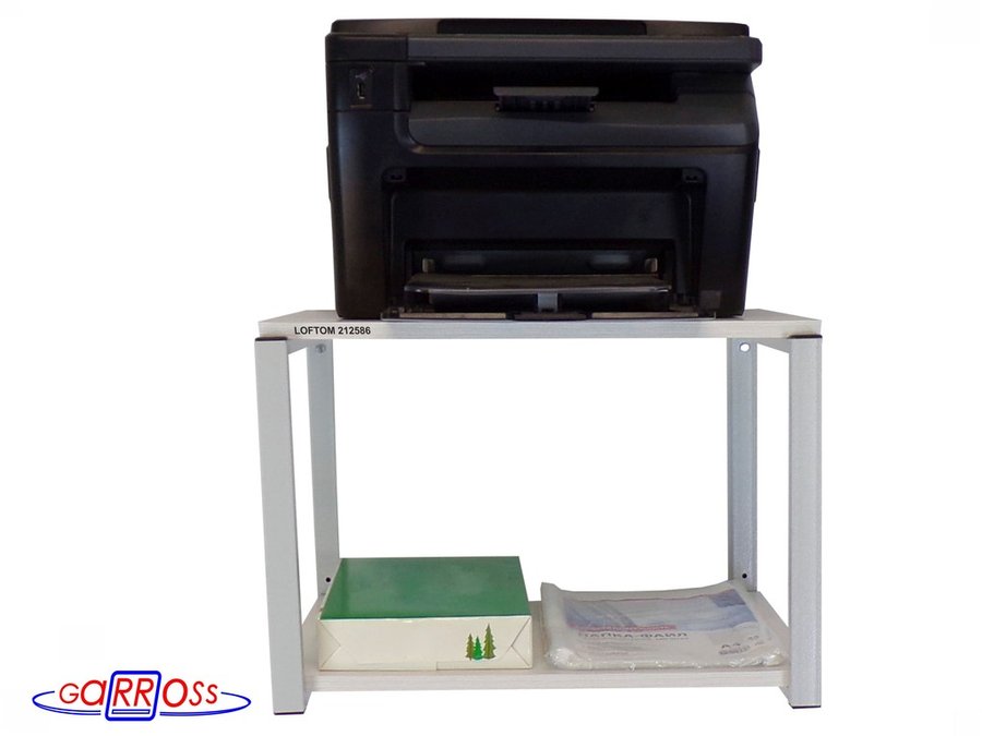 Полка под МФУ или принтер, высота 38см серый "LOFTOM 212586" две полки 35х54см, сосна выбеленная