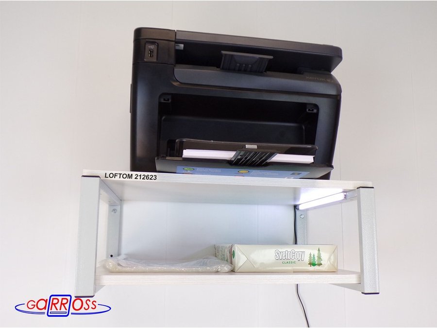 Подставка для принтера или МФУ с подсветкой, 21см серый "LOFTOM 212623" две полки 35х54см,сосна выб.