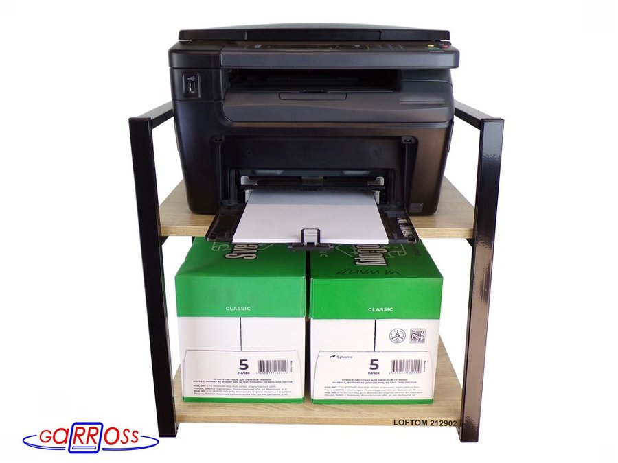 Полка под принтер или МФУ, высота 54см черная "LOFTOM 212902" 2 уровня, 35х54см, дуб