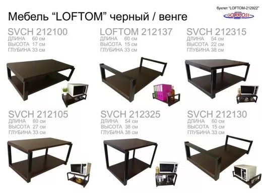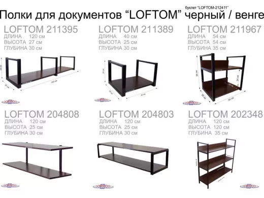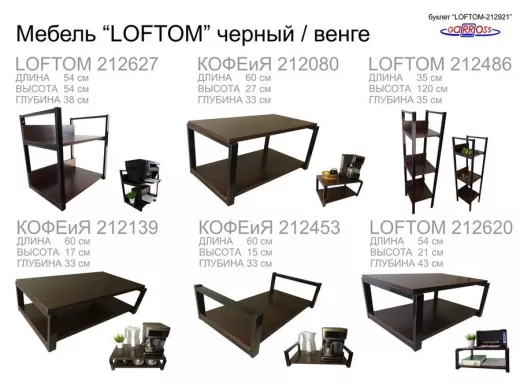 Полка под принтер или МФУ, высота 54см черная "LOFTOM 212904" 2 уровня, 35х54см, венге