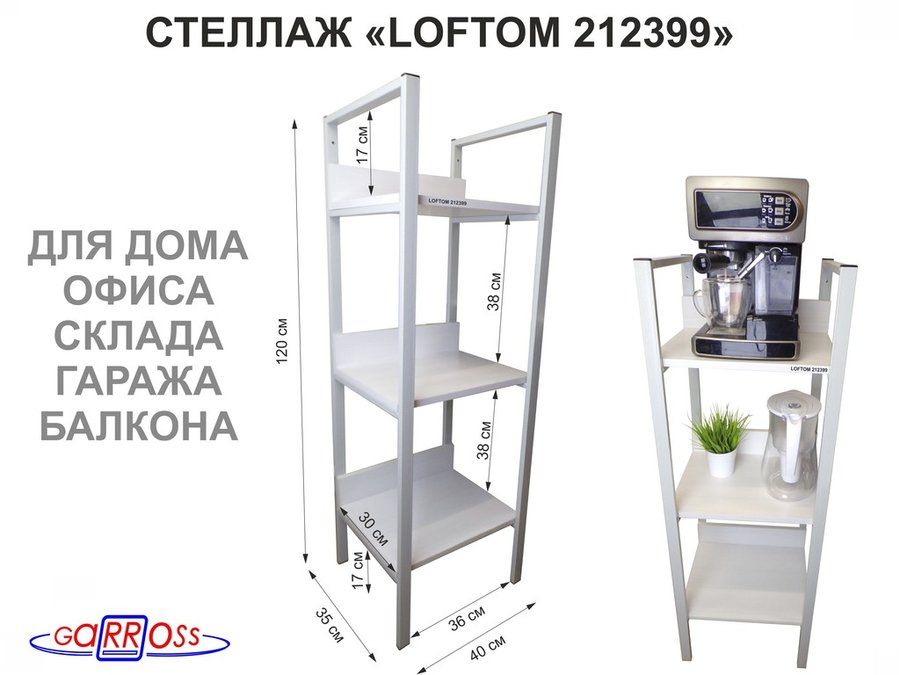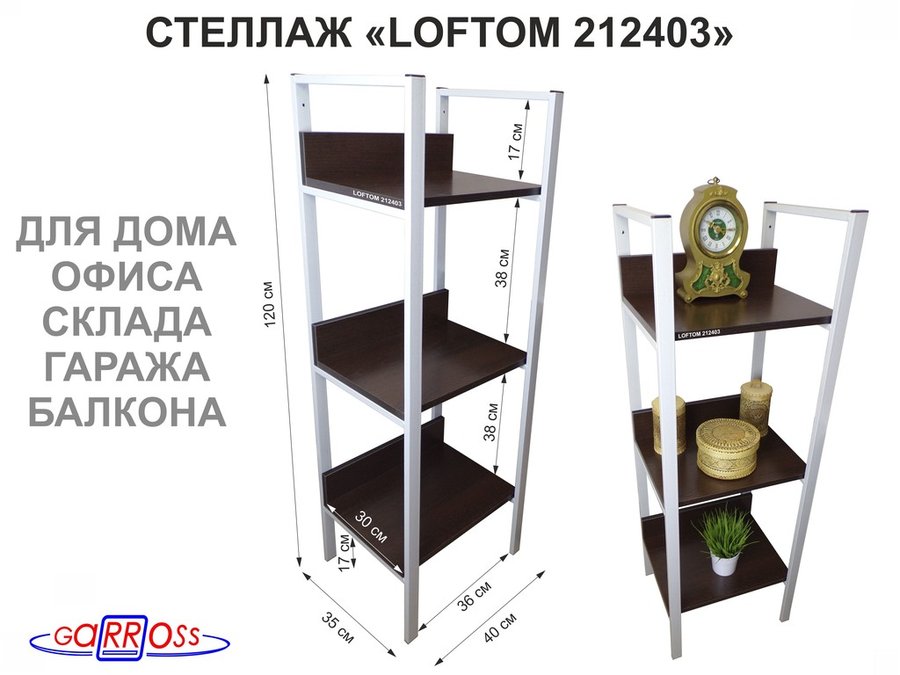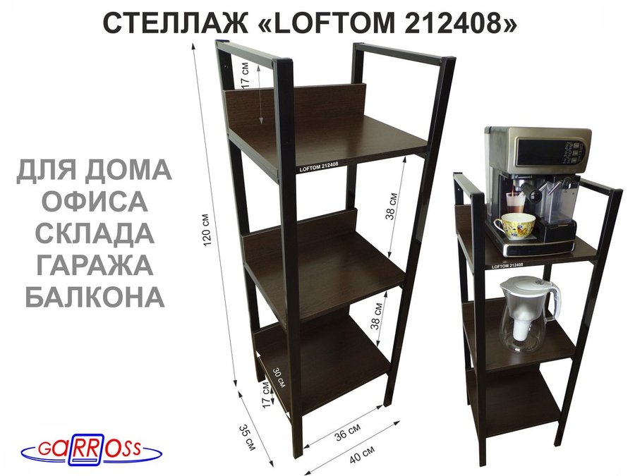 Стеллажи универсальные "LOFTOM" с 3 полками 0,4х0,3 м, высотой 1,2 м