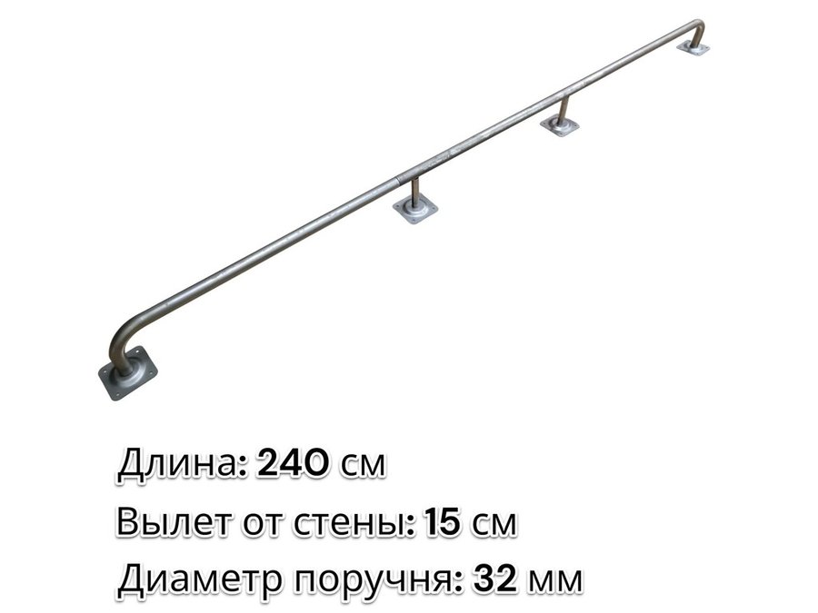 В корзину Купить в 1 клик Поручень пристенный для зданий, длина 240см вылет 15см "ABIKREP-217055" серый, 4 опоры, диаметр 32мм