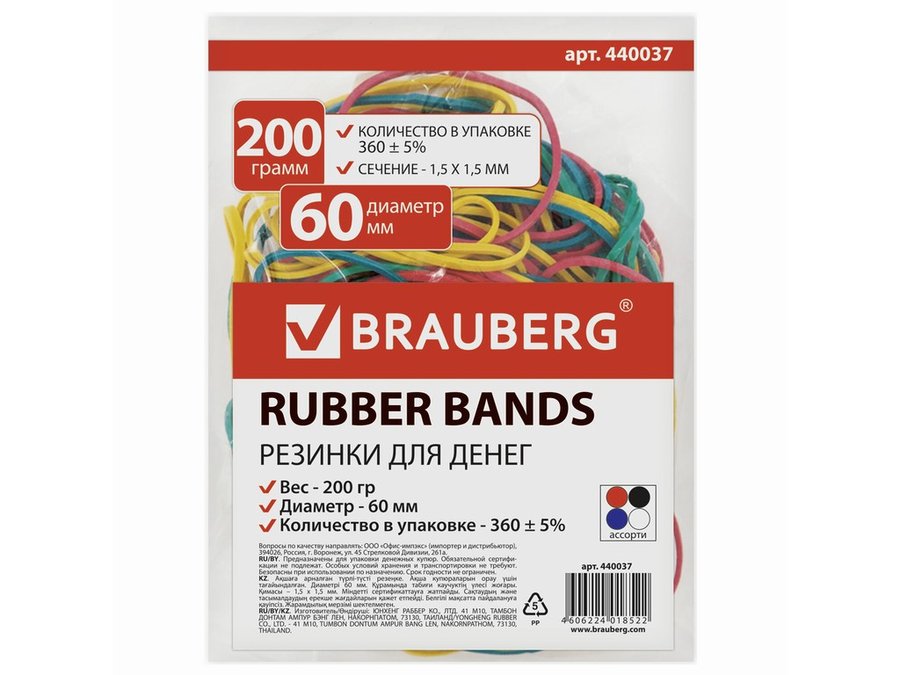 В корзину Купить в 1 клик Резинки банковские универсальные "BR-77339" 200 г, диаметр 60мм, цветные, натуральный каучук