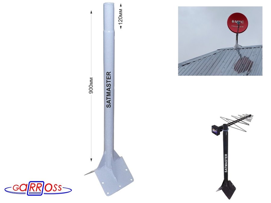 В корзину Купить в 1 клик Кронштейн антенный усиленный на конёк крыши "SATMASTER-900GR-122294" серый, высота 90см,диаметр 50мм