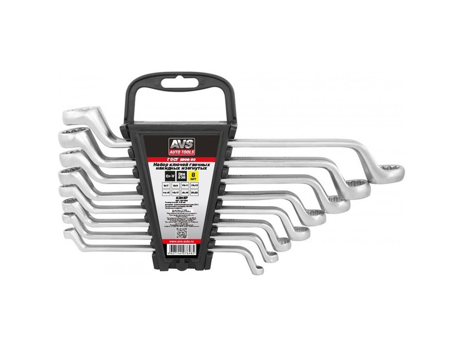 В корзину Купить в 1 клик Набор ключей гаечных накидных изогнутых на держателе (6-22 мм) (8 предметов)