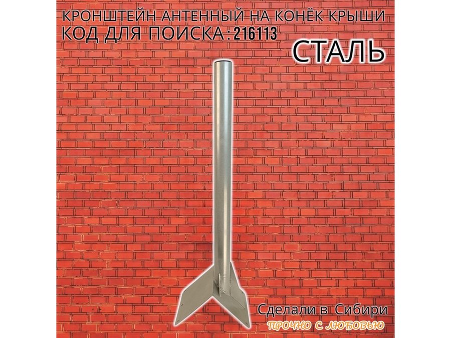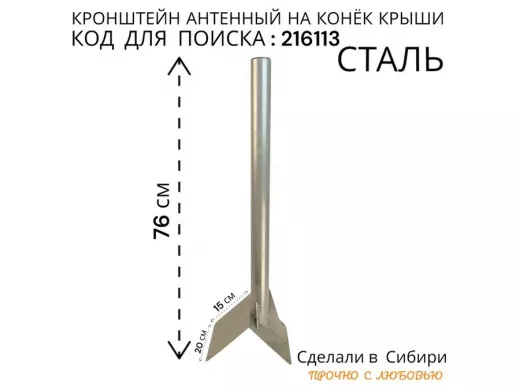 В корзину Купить в 1 клик Кронштейн антенный на конёк крыши "КОНЁК-V4-700GR-216113" серый, высота 70 см, диам.51мм с заглушкой