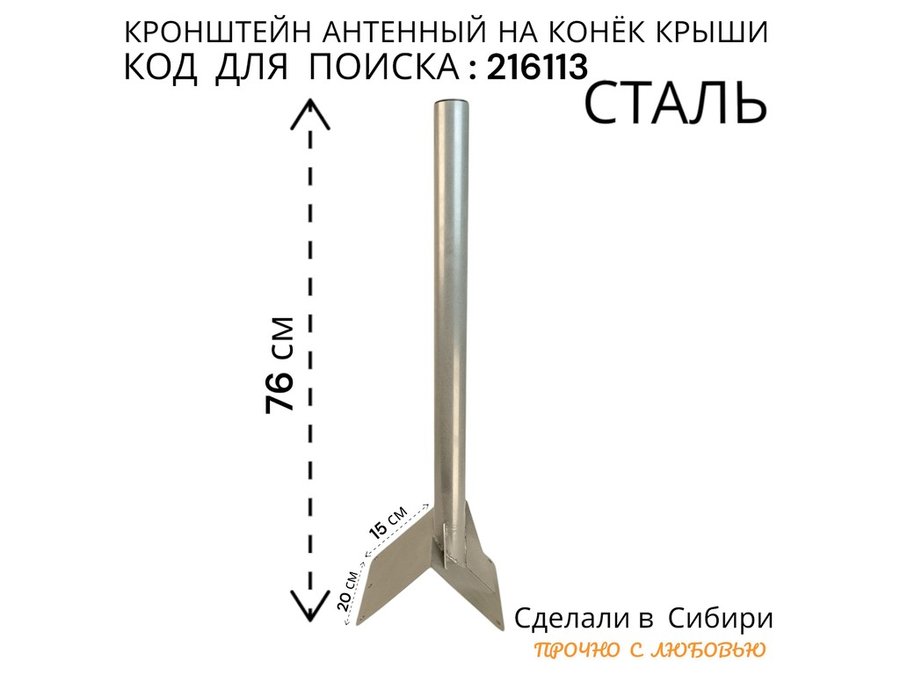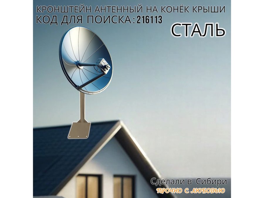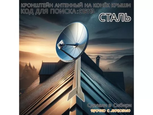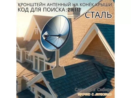 • Кронштейн усилен 3-мя стальными косынками, это позволяет получить большую прочность для крепления спутниковых тарелок 0,6м и любых других антенн.