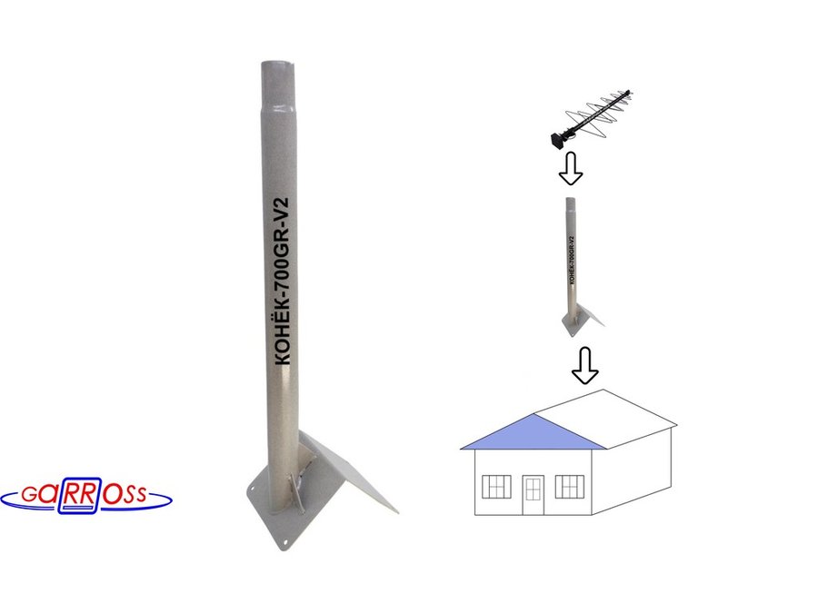 В корзину Купить в 1 клик Кронштейн антенный на конёк крыши "КОНЁК-V2-700GR-112274" серый, высота 70 см, диаметр 50 мм, обжат