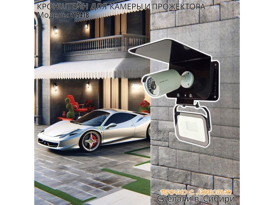 Современное надёжное решение для монтажа видеокамеры и прожектора на стену здания.
