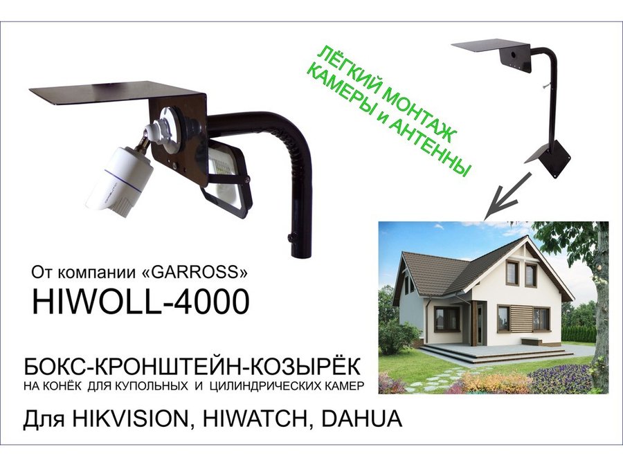 • Кронштейн с козырьком предназначен для крепления видеокамер и защиты их от дождя, снега и солнца.
