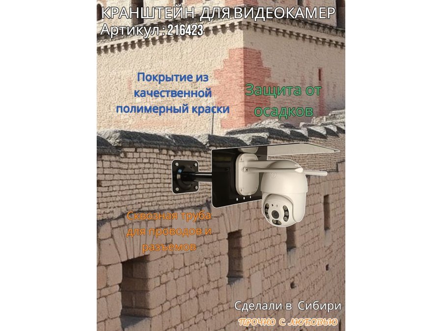 - Стальной кронштейн позволяет вынести камеру от стены на 25 см.